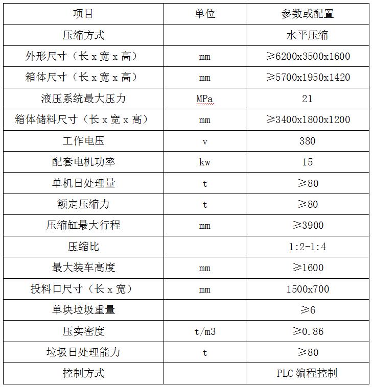 全封閉水平壓縮:采用水平壓縮方式,垃圾壓縮密度≥0.86t/m3,垃圾壓縮后體積大大減小,從而大幅度提高轉(zhuǎn)運(yùn)車輛裝載量和轉(zhuǎn)運(yùn)效率,降低垃圾處理、轉(zhuǎn)運(yùn)等費(fèi)用;