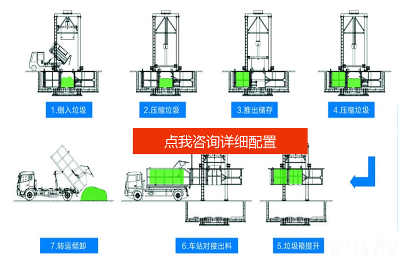 設(shè)有垃圾儲存箱,適合集裝箱式散裝垃圾運(yùn)輸車卸料,減少運(yùn)輸費(fèi)用。